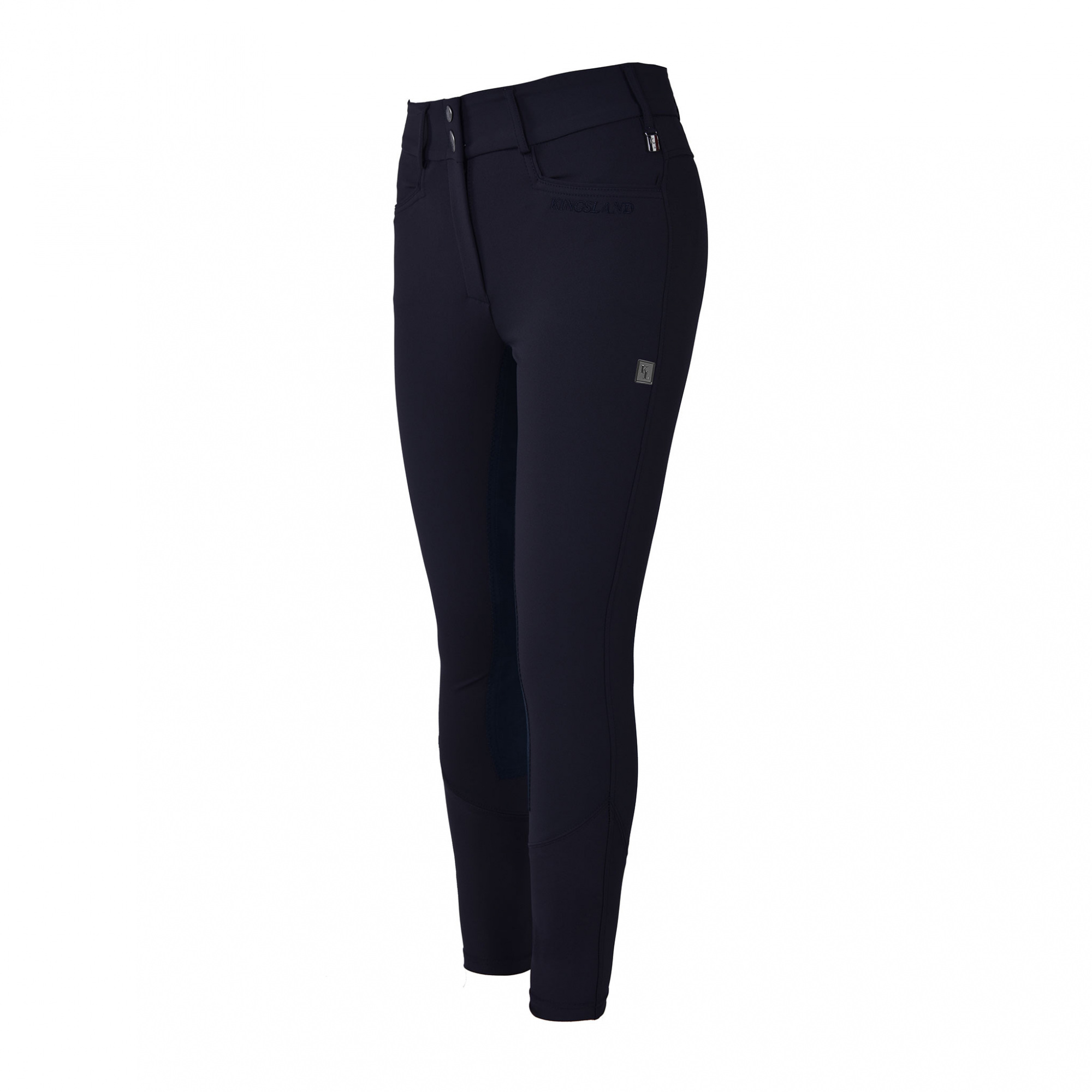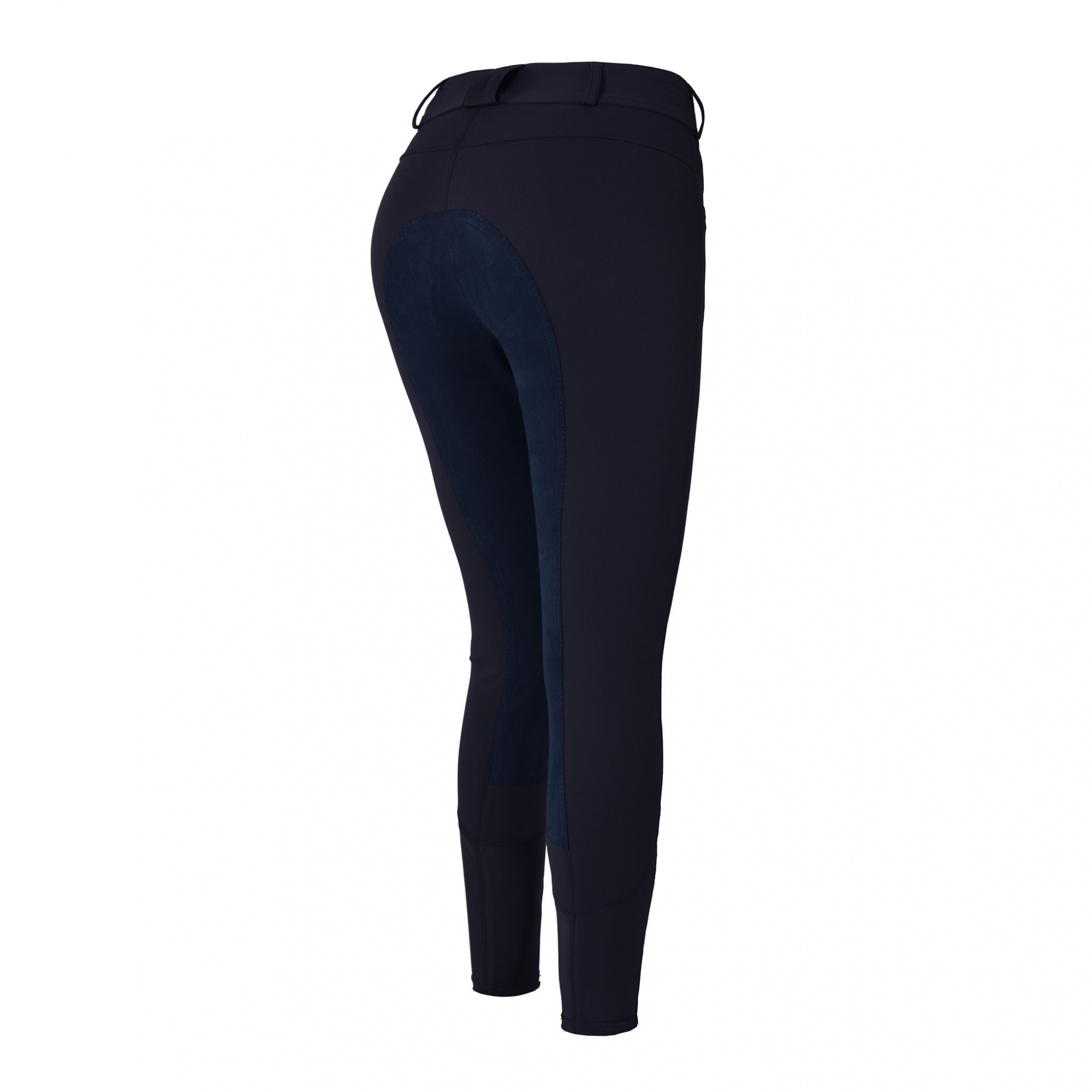 Damskie bryczesy z wysokim stanem, zapinane na dwa guziki. Bryczesy wykonane z materiału rozciągliwego w 4 kierunkach. Bryczesy doskonale podkreślają sylwetkę jeźdźca. Bardzo dużą zaletą materiału, z którego wykonano ten model bryczesów jest ich odporność na wodę oraz kurz. Materiał bardzo dobrze przepuszcza powietrze. Na dole łydek bryczesy wykończono Lycrą, w celu zapewnienia lepszego komfortu.