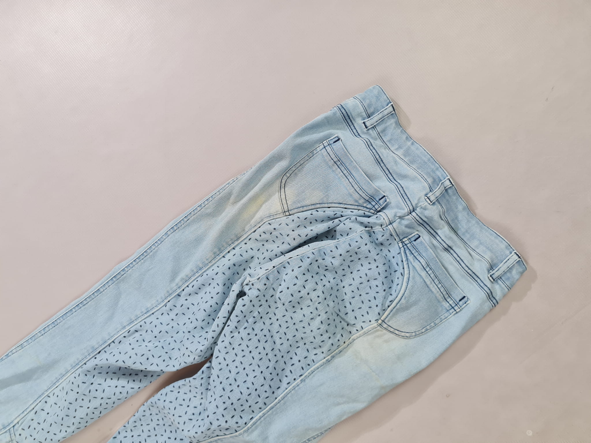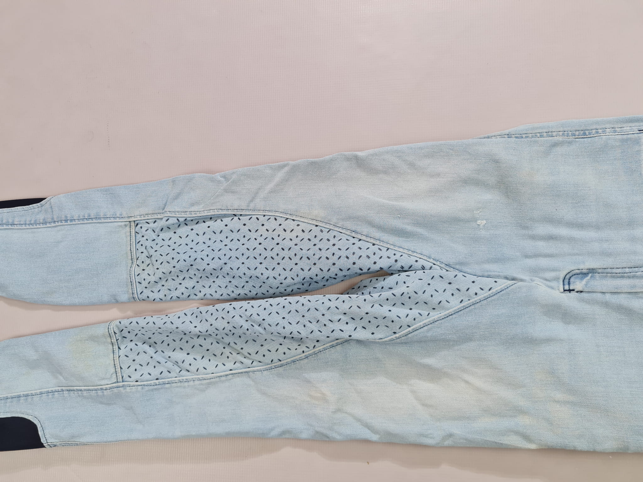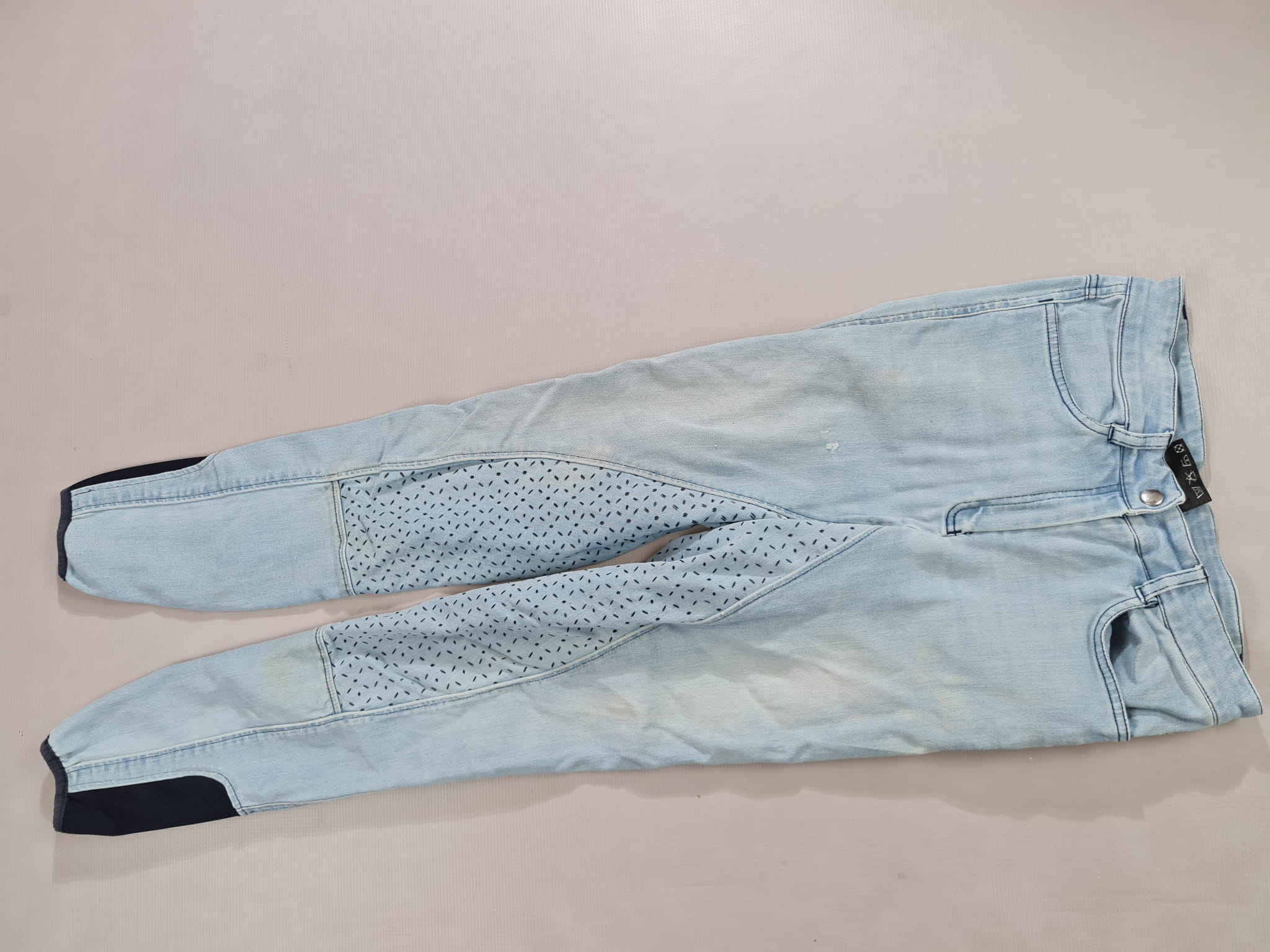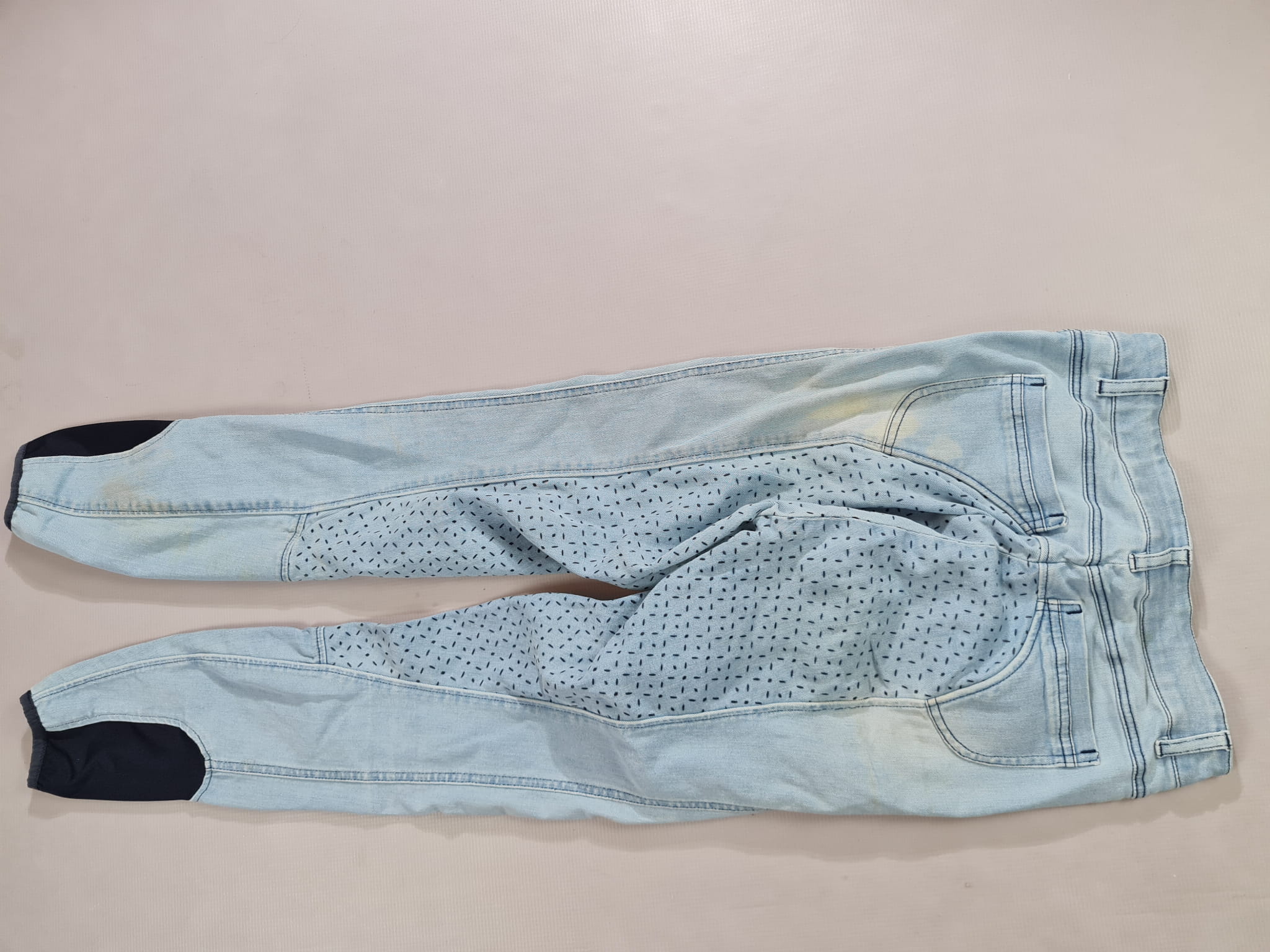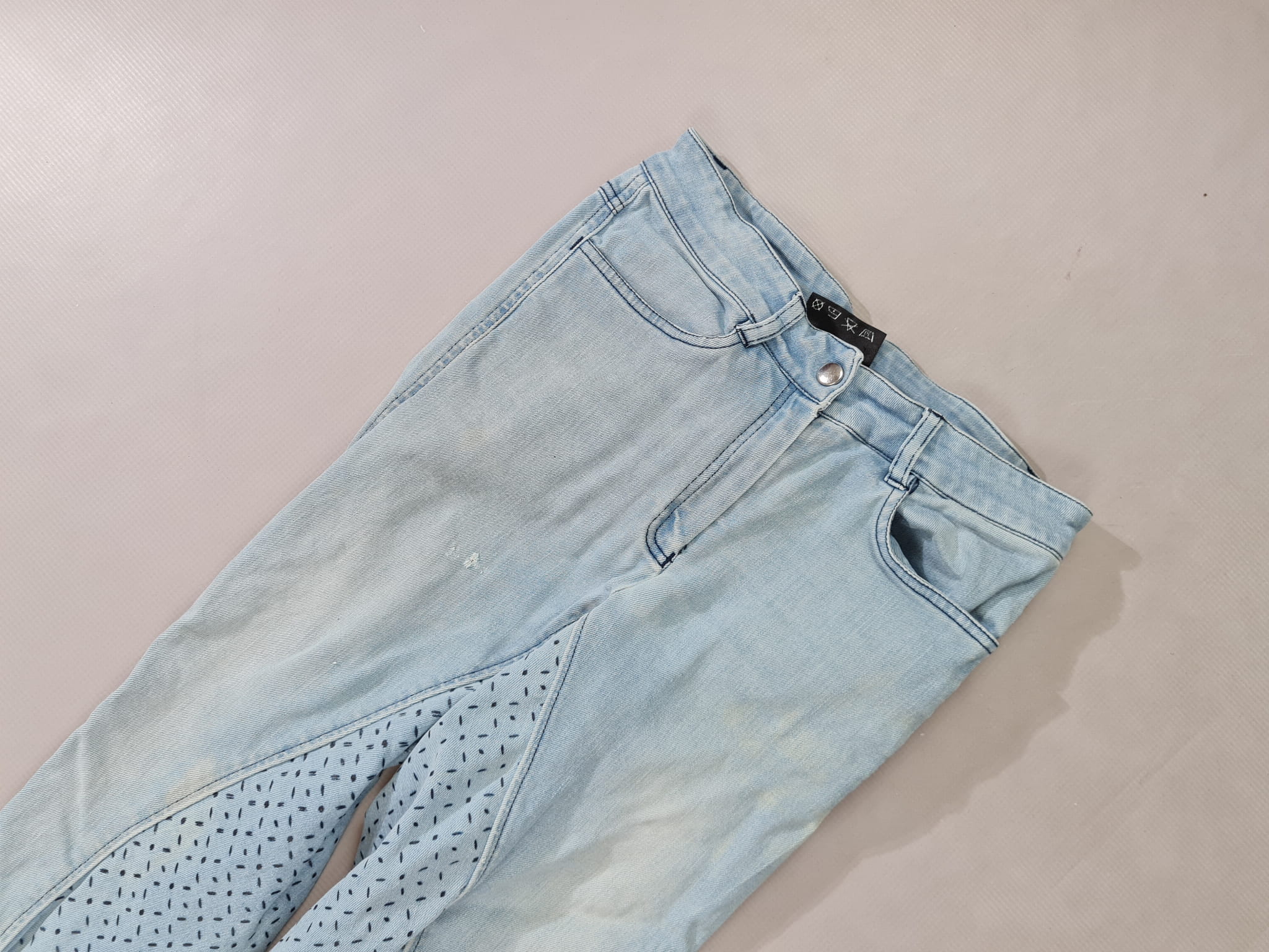 Używane bryczesy jeansowe. Posiadają silikonowy pełny lej