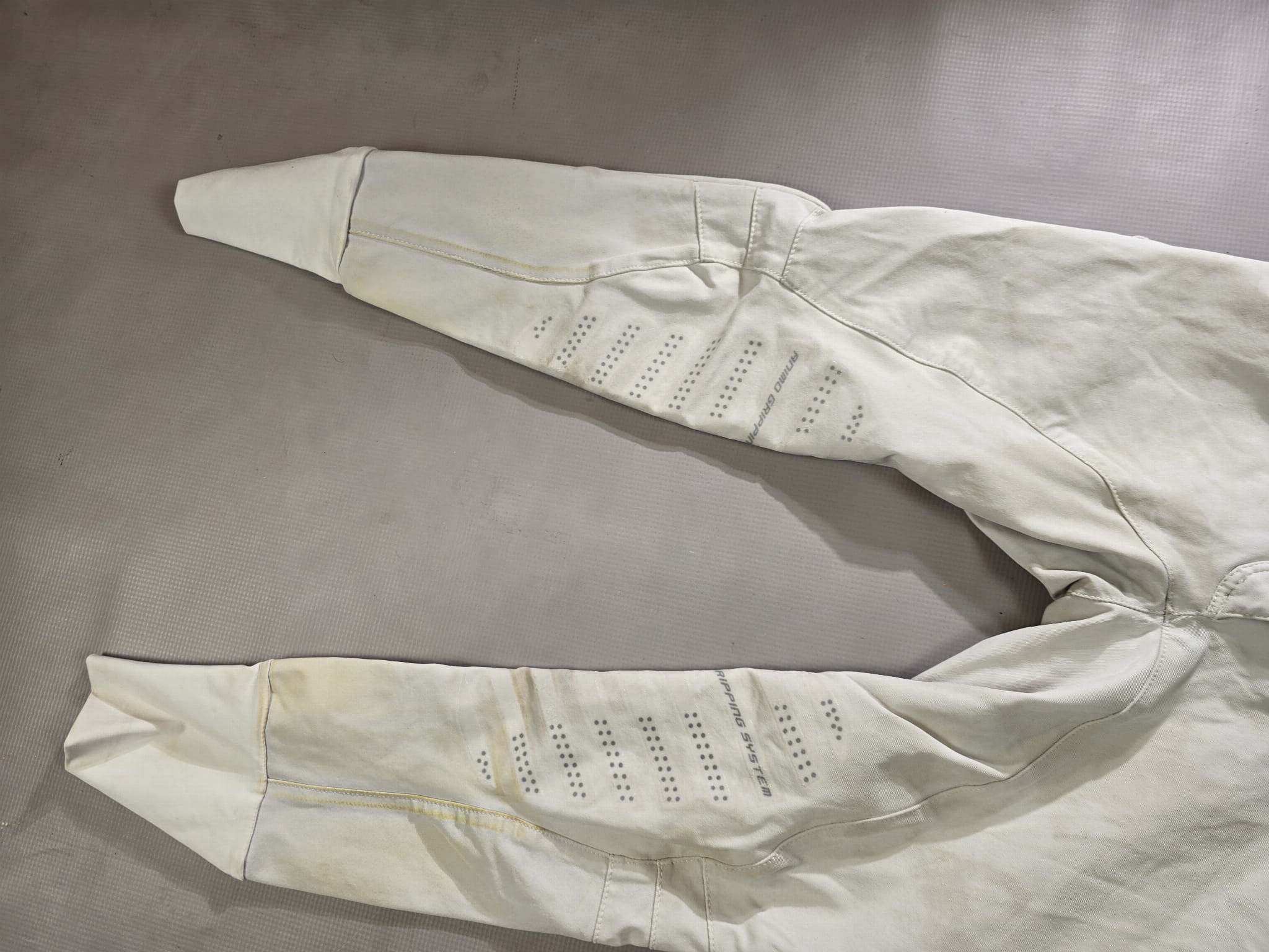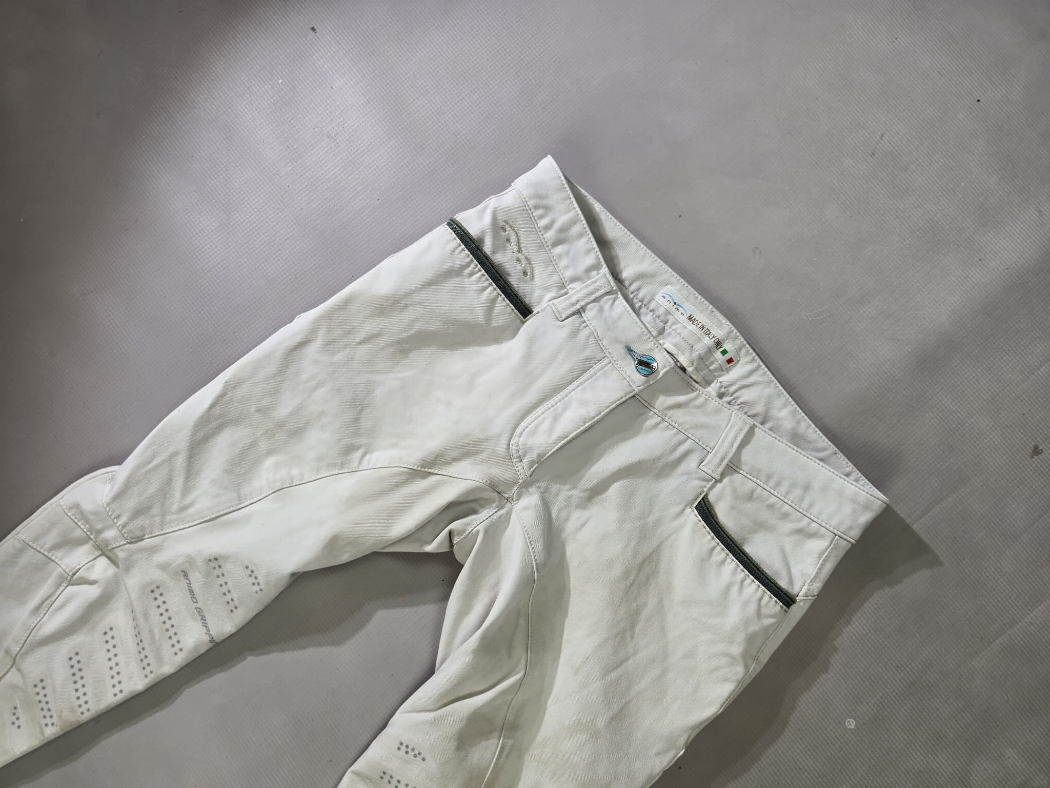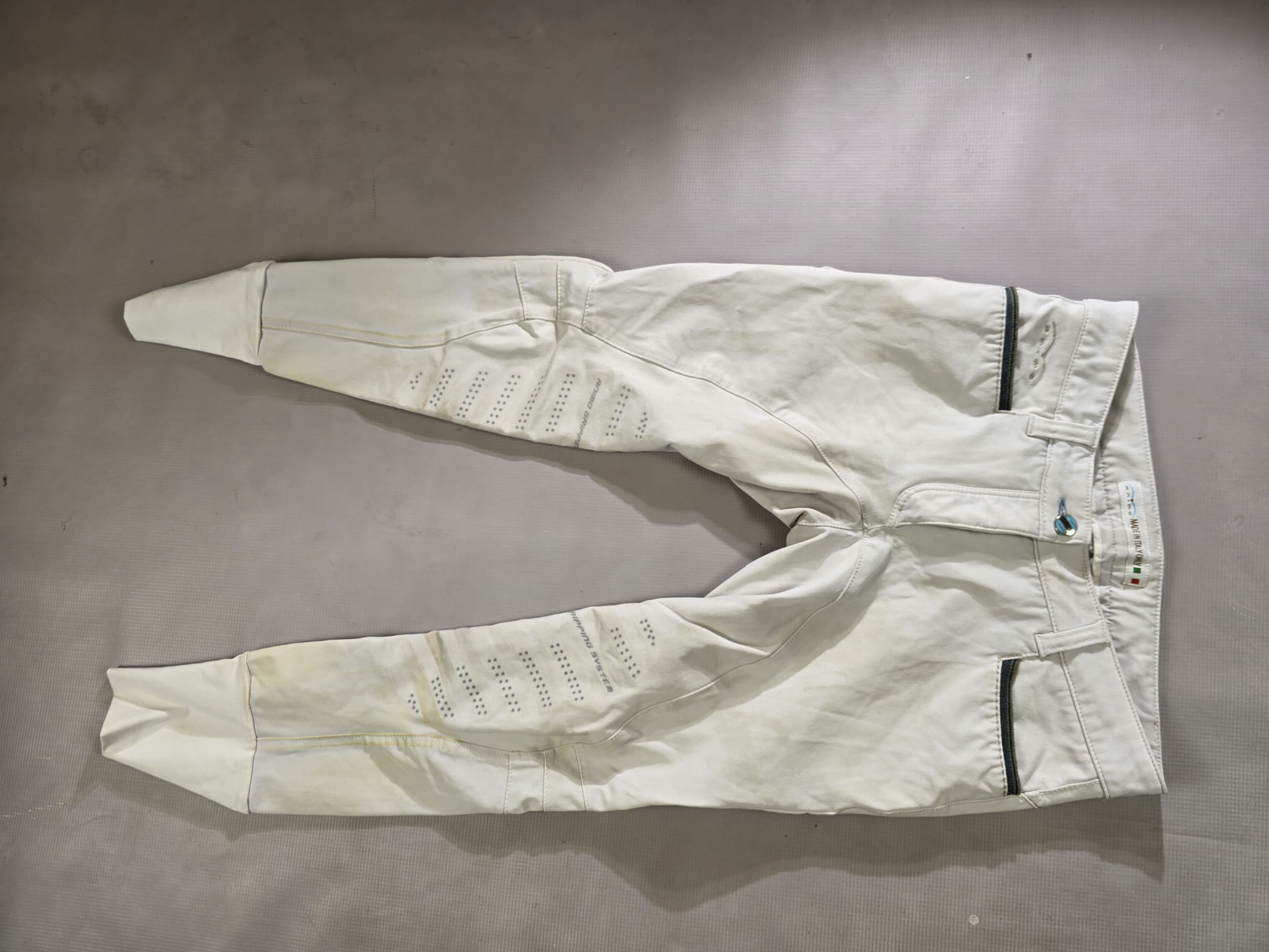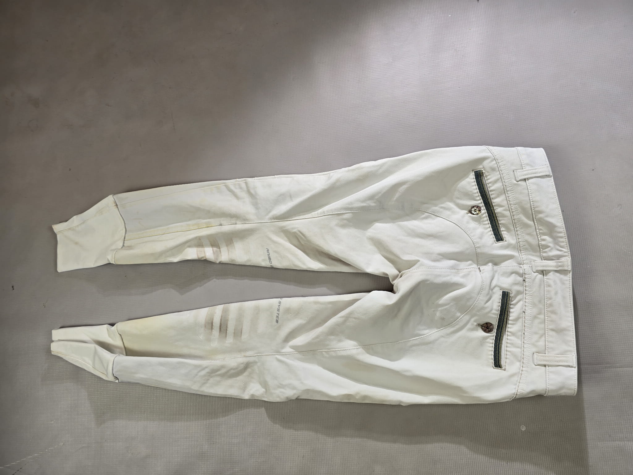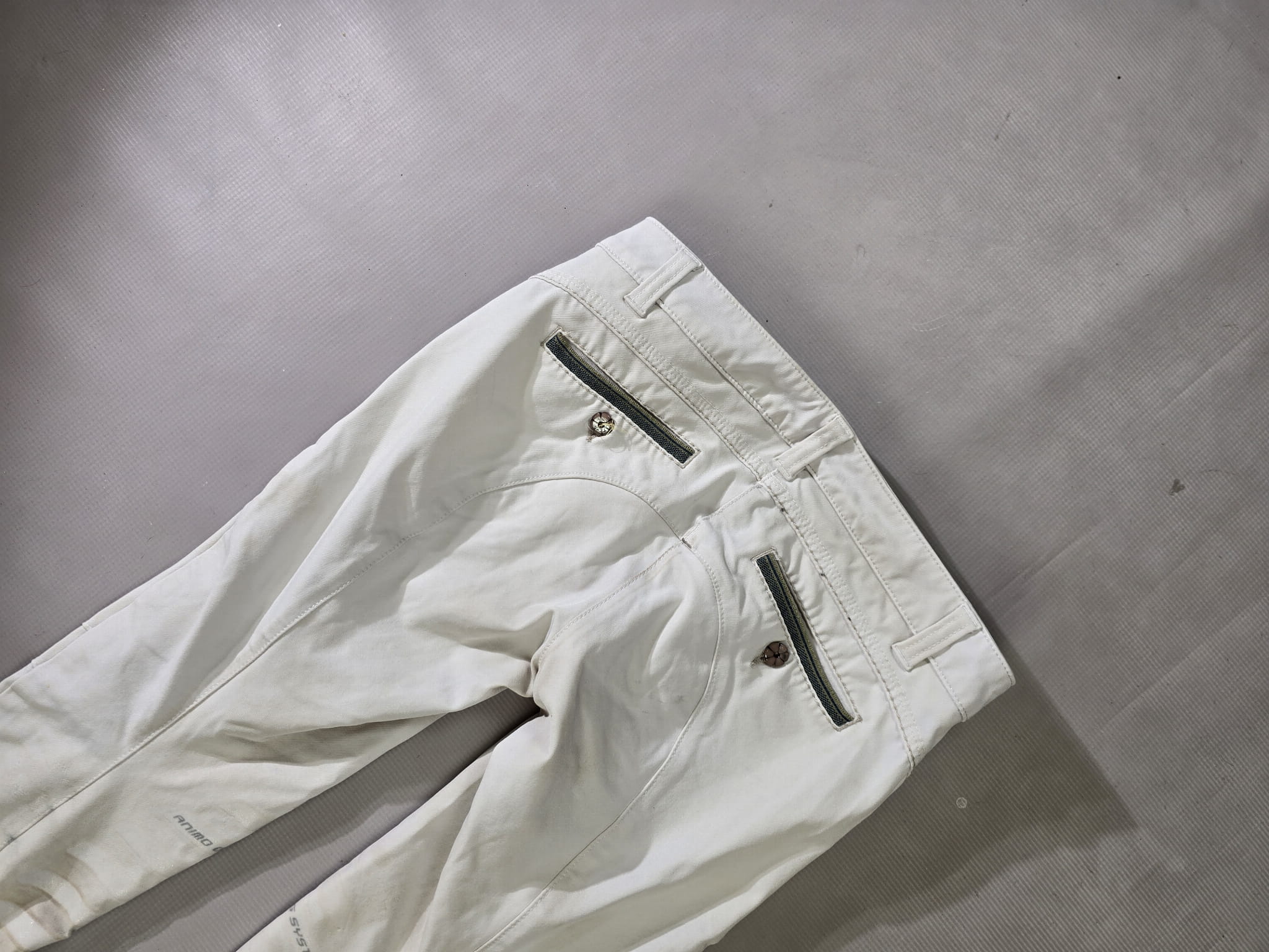 Używane bryczesy koloru białego. Posiadają silikonowy krótki lej.