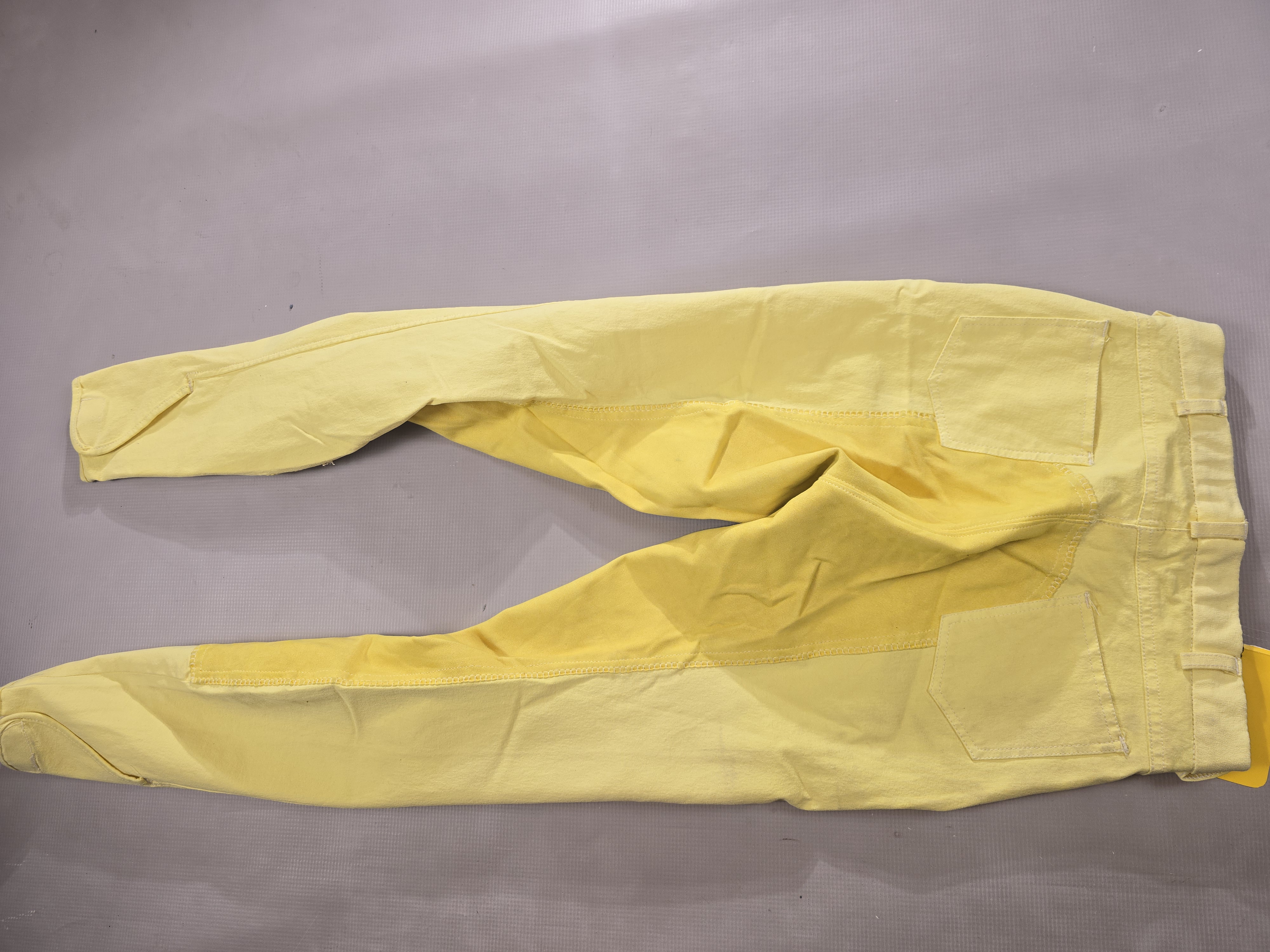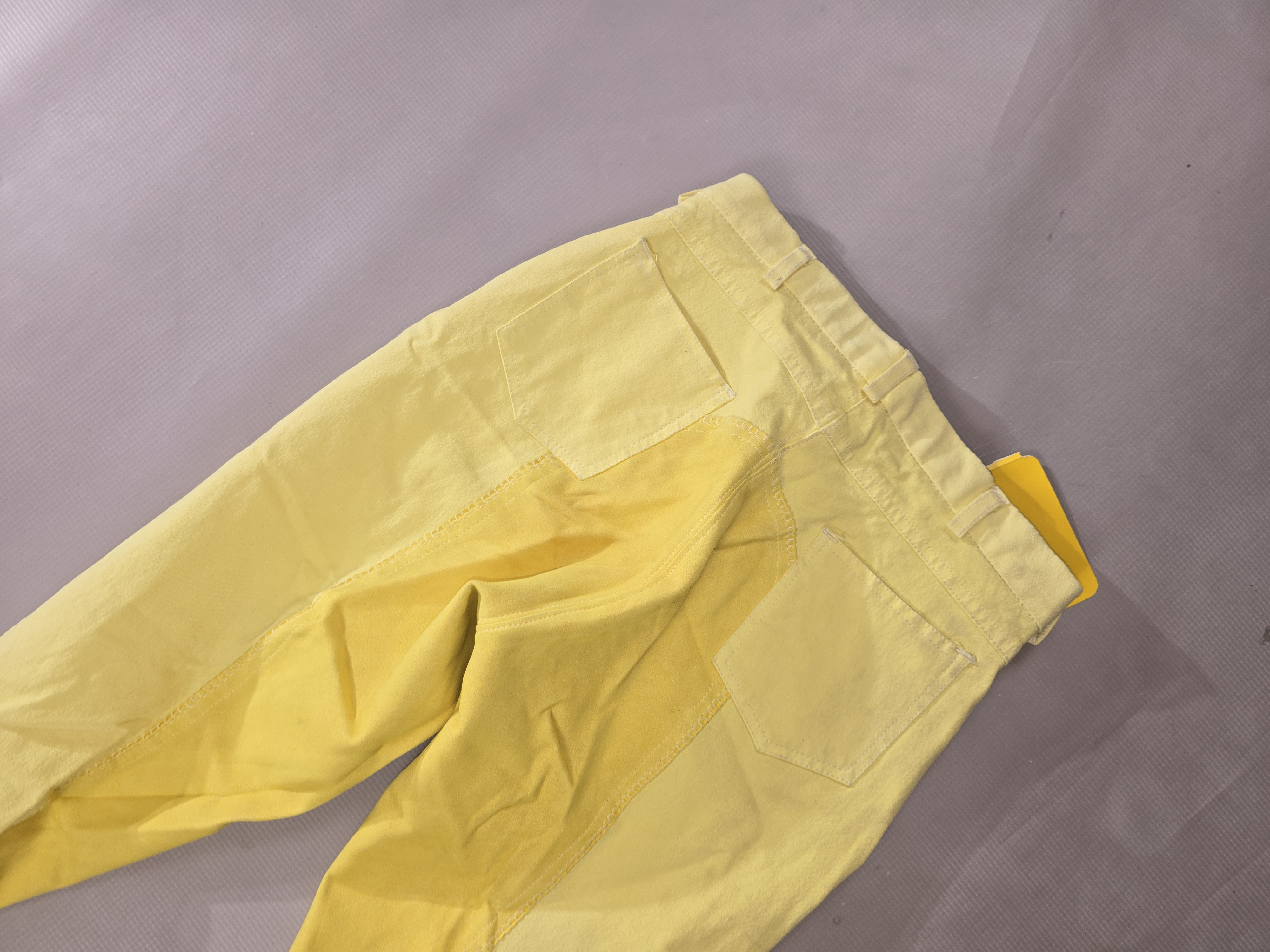 NOWE bryczesy koloru żółtego. Posiadają skórzany pełny lej.