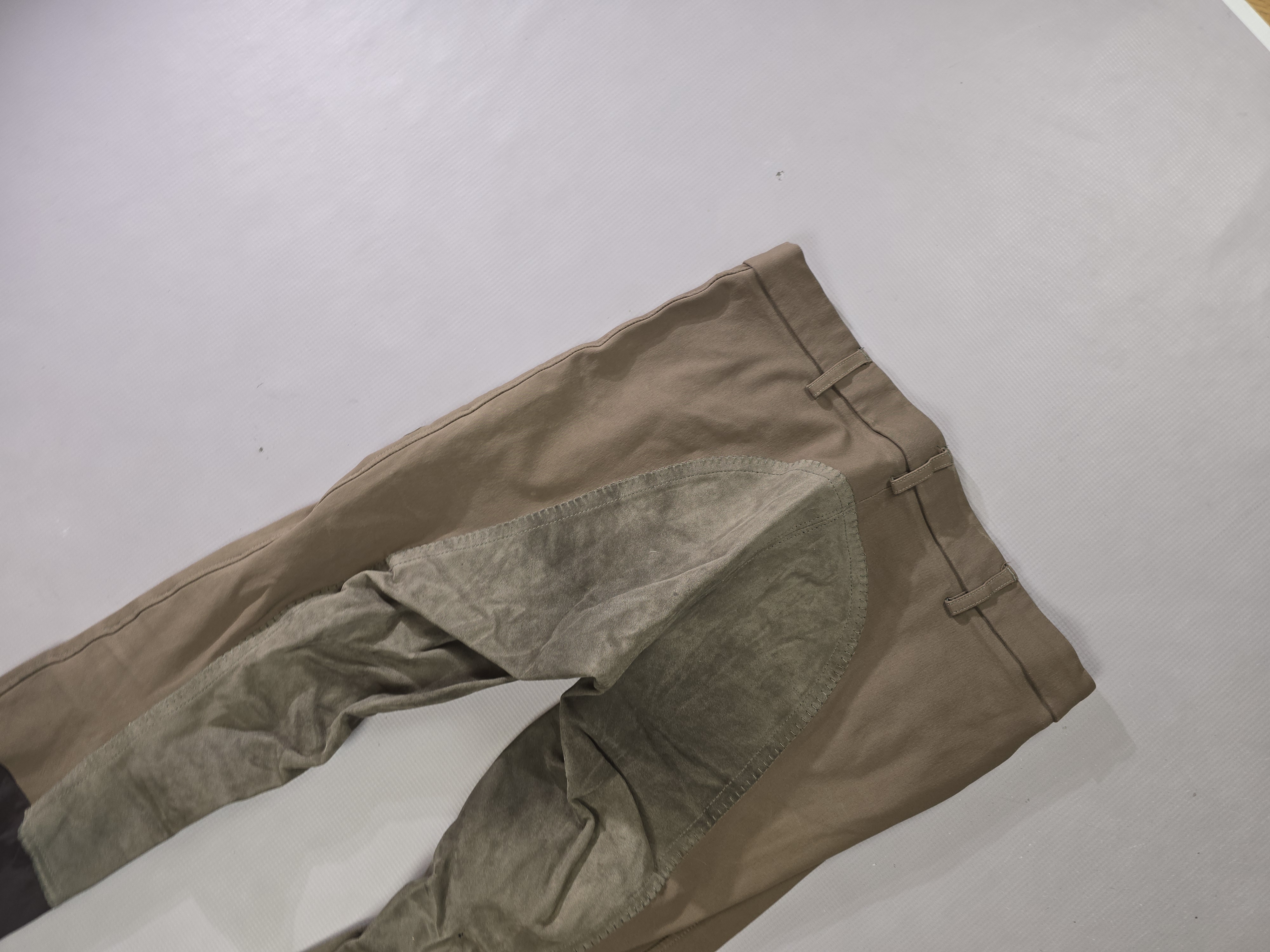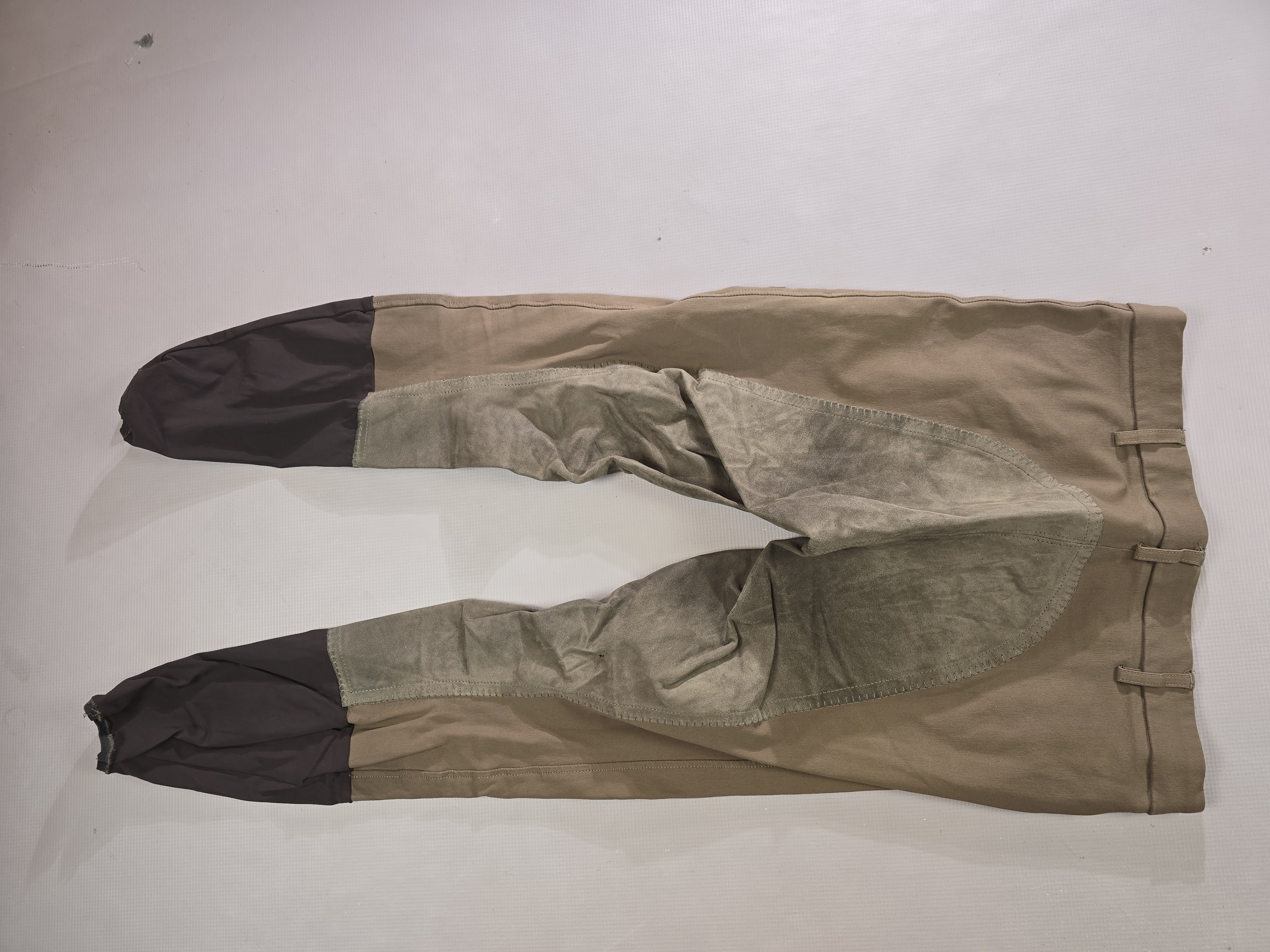 Używane bryczesy koloru brązowego. Posiadają skórzany pełny lej.