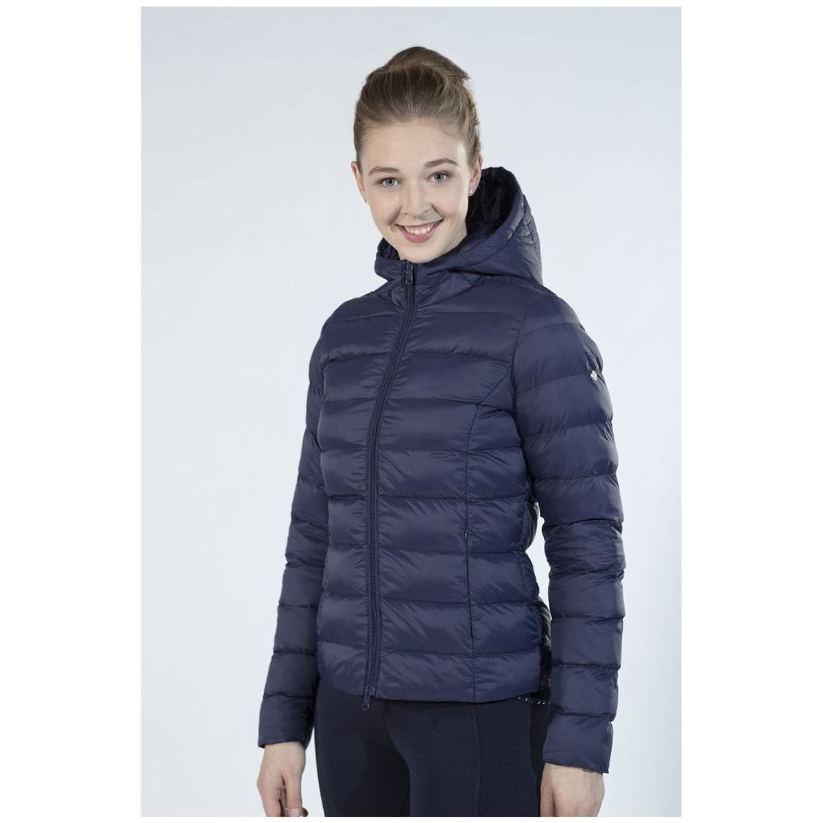 Prosta, stylowa kurtka przejściowa od HKM - idealna zarówno na wiosnę, jak i jesień, a może po prostu załóż ją podczas chłodnej jazdy, gdy potrzebujesz dodatkowego ciepła, ale kurtka zimowa jest zbyt gorąca? Granatowa, dopasowana kurtka jeździecka jest również wyposażona w dwie praktyczne kieszenie na zamek oraz dużą, przestronną czapkę, a zapina się na gładki zamek dwukierunkowy.