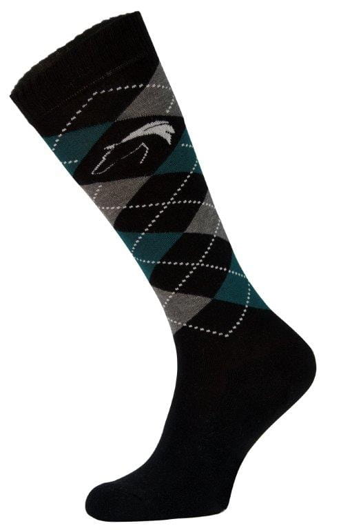 Klasyczny model podkolanówek jeździeckich w interesującej gamie kolorystycznej. Dla poprawy komfortu dolna część wyścielona została materiałem frotte.