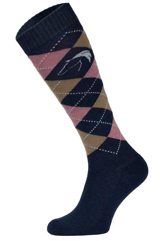 Klasyczny model podkolanówek jeździeckich w interesującej gamie kolorystycznej. Dla poprawy komfortu dolna część wyścielona została materiałem frotte.