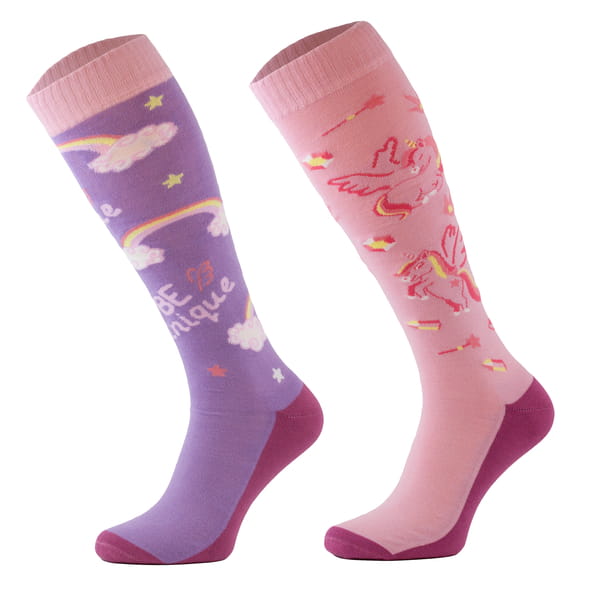 Klasyczny model podkolanówek jeździeckich w interesującej gamie kolorystycznej. Dla poprawy komfortu dolna część wyścielona została materiałem frotte.