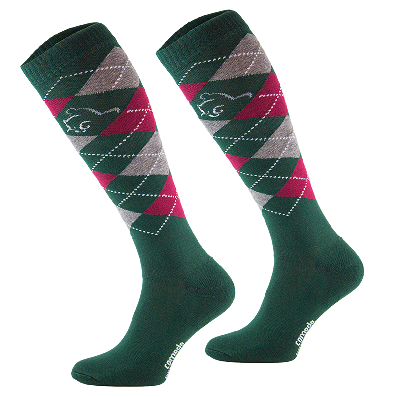 Klasyczny model podkolanówek jeździeckich w interesującej gamie kolorystycznej. Dla poprawy komfortu dolna część wyścielona została materiałem frotte.