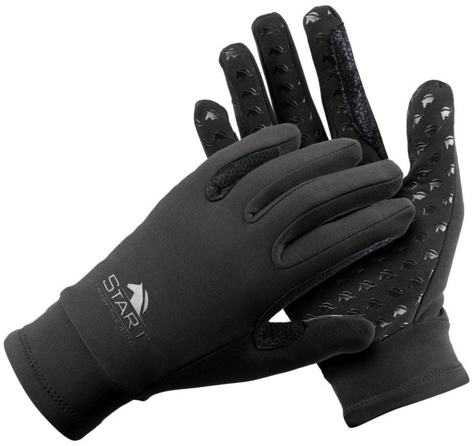 Ciepłe rękawiczki zimowe, wykonane z elastycznego materiału podszytego mikro-polarem. W śródręczu zastosowane zostały silikonowe wstawki w kształcie logo, które zwiększają przyczepność do wodzy. Model dodatkowo posiada wzmocnienia w miejscu trzymania wodzy.