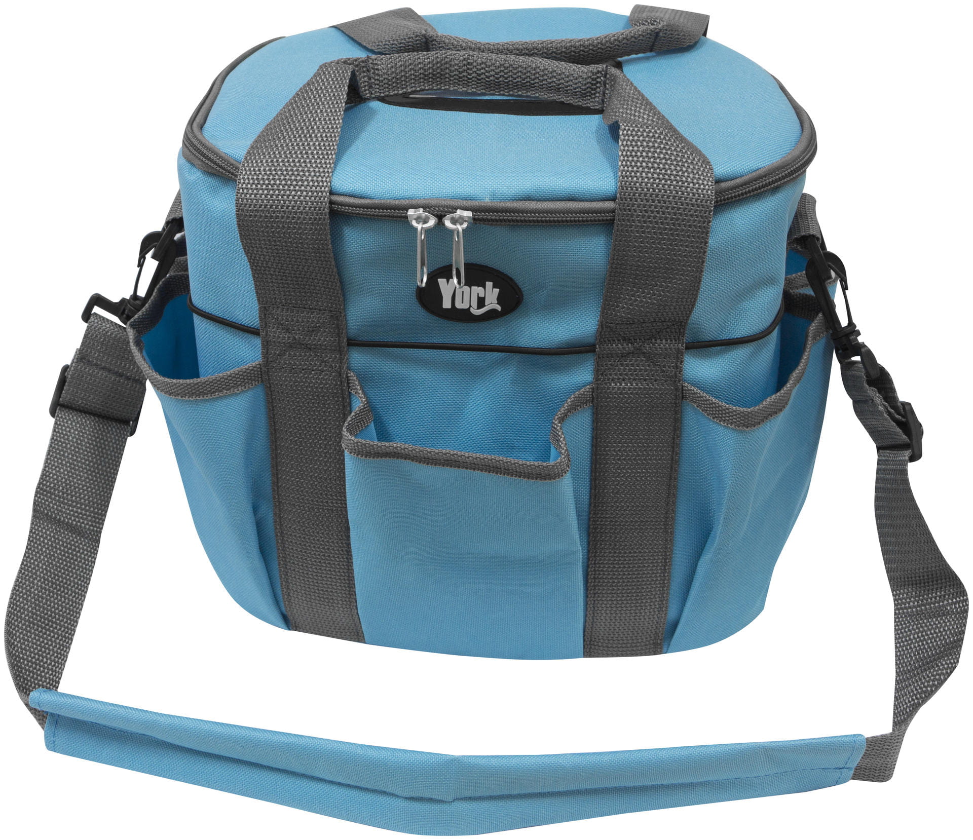 Praktyczna dwukolorowa torba na akcesoria. Wykonana z poliestru. Oprócz głównej komory, która jest zamykana, posiada dodatkowo sześć kieszonek na niezbędne rzeczy do czyszczenia konia. Od spodu zaopatrzona w "nóżki", które zapobiegają brudzeniu się. Posiada pasek na ramię z możliwością regulacji długości.