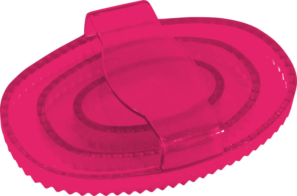 Zgrzebło do czyszczenia konia wykonane z transparentnej gumy.